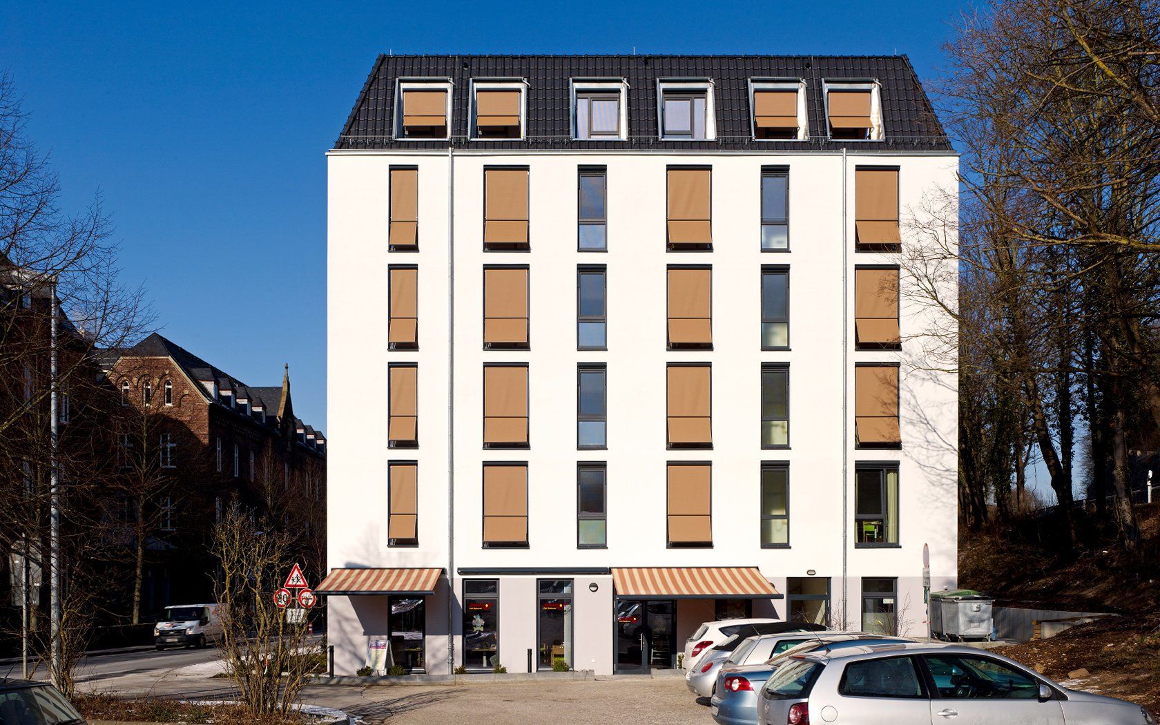 Der fünfstoeckige Komplex ist so gestaltet, dass er trotz seiner kompakten Bauweise gegliedert ist und sich in das Stadtbild einfügt. Vorgesehen sind 80 Pflegeplätze und 23 Einheiten für betreutes Wohnen. Zentraler Punkt ist das Cafe & Restaurant, das soziale Zentrum der Bewohner. Energetisch ist das Neubaugebäude dabei hocheffizient. Als KFW - Effizienzhaus 55 ist es hochgedämmt und wird mit einer Pelletheizung beheizt. Betrieben wird die Seniorenwohnanlage von der Ursula-Schmidt-Gruppe, die unter anderem seit 20 Jahren eine ähnliche Einrichtung in Aldenhoven bei Jülich betreibt.
